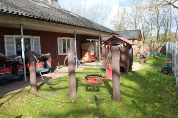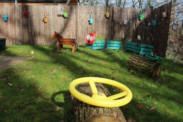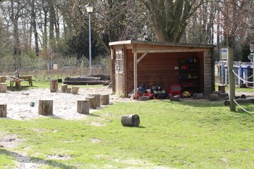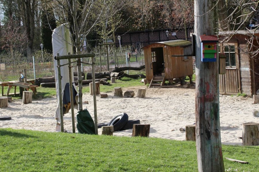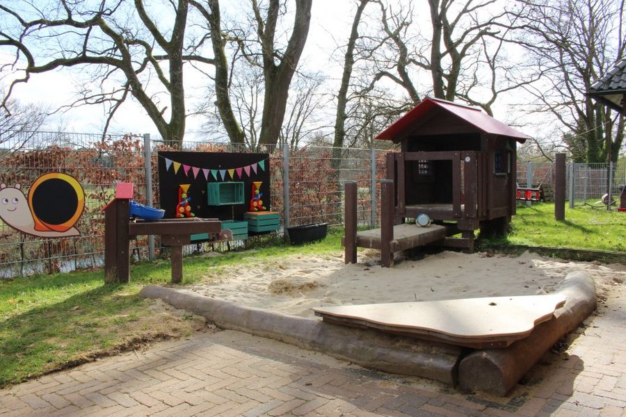 Ein besonderes Highlight ist unser großes Außengelände mit einer Matschanlage, die zum Experimentieren mit Wasser und Sand einlädt.